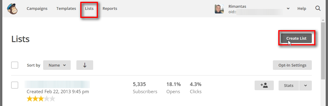 Log into your MailChimp account, open the “Lists” section and click the “Create List” button.