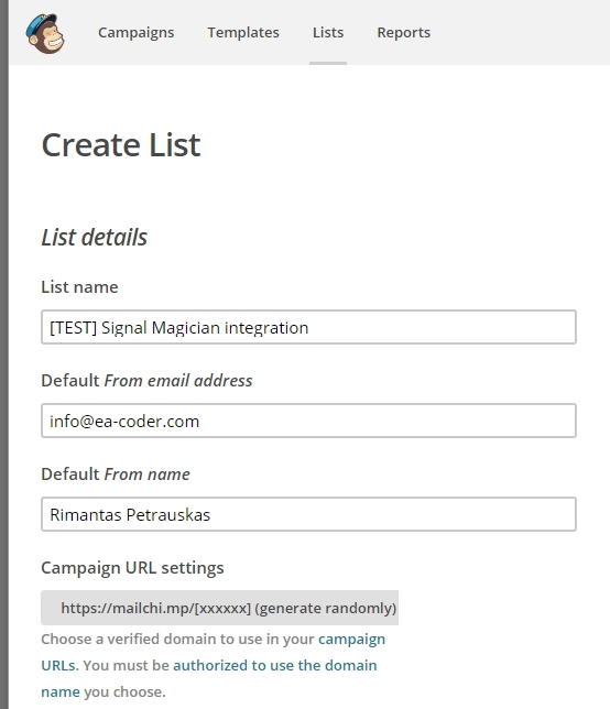 When you enter a correct MailChimp API key, the Signal Magician will be able to connect to MailChimp.