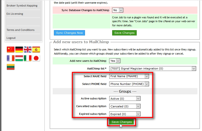 If you won’t select correct fields, then Signal Magician might fail to add users to your MailChimp list.