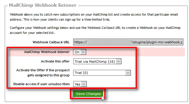 MailChimp Webhook listener = On