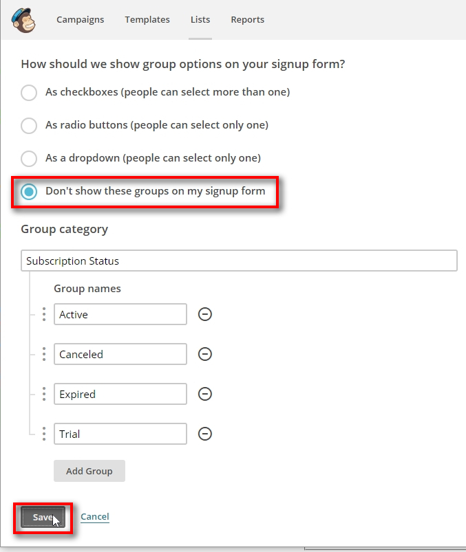 If you don’t select groups, then Signal Magician will add users to your MailChimp list, but you won’t be able to group them by their subscription status.